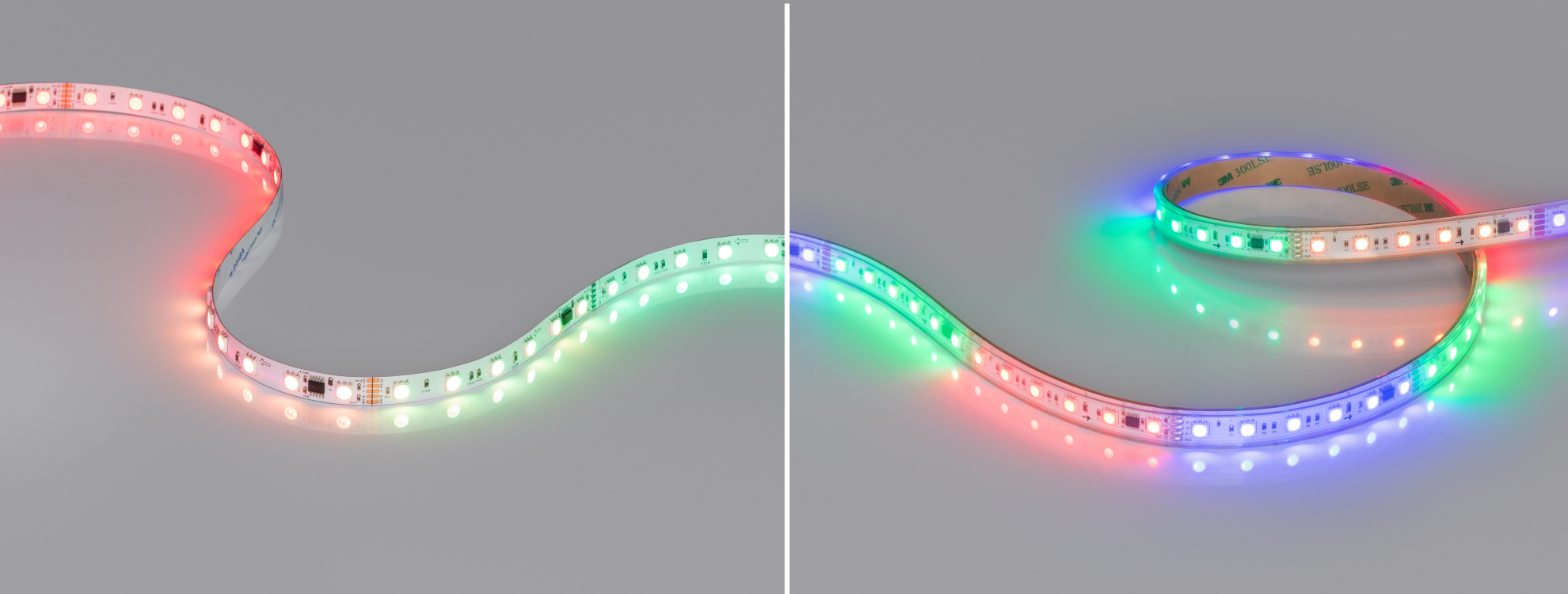 Большой выбор светодиодных лент с управлением по протоколу DMX, благодаря которому можно создавать многоцветные световые эффекты различной сложности: от простейшего эффекта «бегущий огонь» до вывода динамических изображений на мультимедийные экраны.