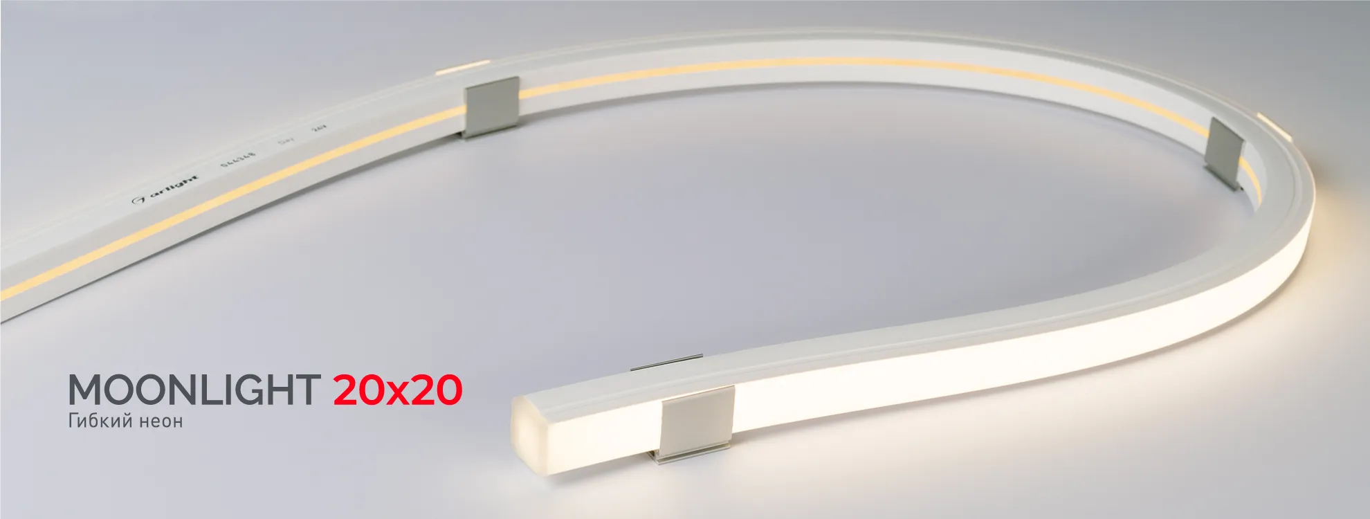 Гибкий неон MOONLIGHT с сечением 20×20 мм обладает высокой степенью пылевлагозащиты (IP67) и отлично подходит для подсветки фасадов, мостов и рекламных конструкций. Квадратная форма сечения позволяет легко устанавливать неон в профиль или крепить на архитектурные элементы. Поставляется в катушках по 15 м.