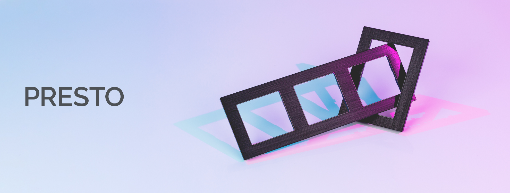 Эстетичный дизайн и классическая цветовая гамма (серебристый и черный цвета) позволяют подобрать оборудование согласно вашим пожеланиям и интерьерной концепции. Корпус рамок PRESTO изготовлен из тугоплавкого пластика с лицевой панелью из алюминиевого сплава, поверхность которых имеет сатинированную обработку.