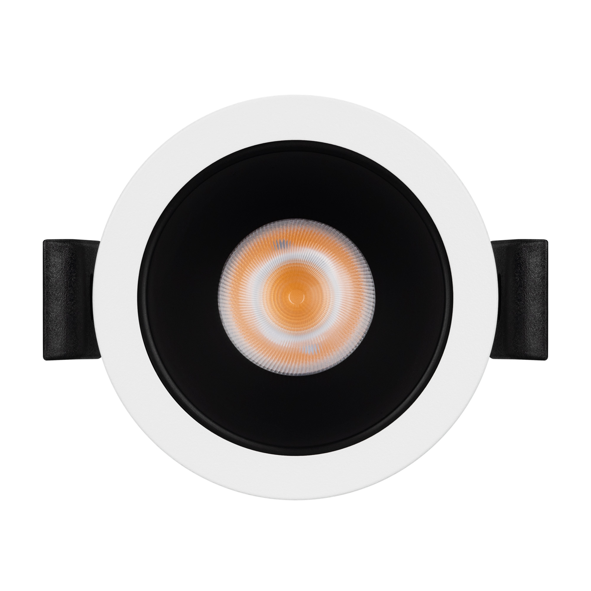 Встраиваемый светильник даунлайт с высоким индексом цветопередачи CRI>90 обеспечивает качественное освещение с точной передачей цветовых оттенков. Алюминиевый круглый корпус с декоративным рефлектором является интересным дизайнерским решением, создавая эффект света из ниоткуда - Darklight. Низкий коэффициент дискомфорта делает освещение очень комфортным для глаз. Защита корпуса на уровне IP20, cветовая эффективность 87 лм/Вт и узкий угол излучения 35 градусов подходят для направленного освещения торговых, офисных, жилых помещений, где отсутствует контакт с водой или другими жидкостями. Светильник легко устанавливается с помощью пружин в монтажное отверстие. Драйвер поставляется в комплекте, позволяя быстро подключить светильник напрямую к сети переменного тока 230 В. Низкая пульсация обеспечивает равномерное освещение без мерцания. Диммирование возможно при замене штатного драйвера.