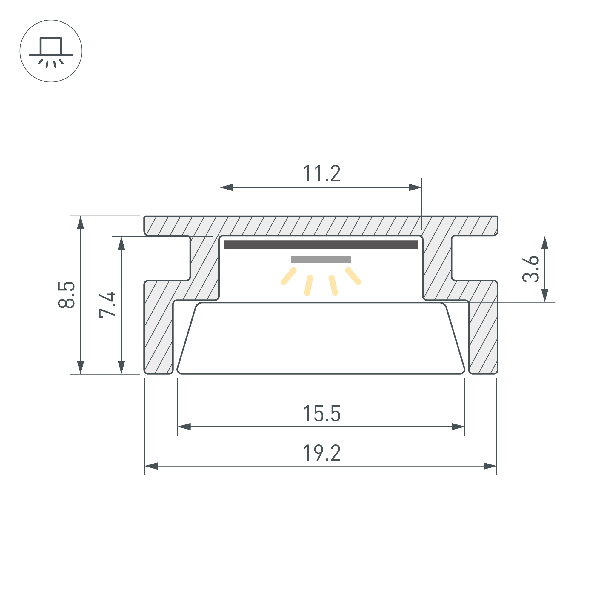Алюминиевый анодированный профиль, встраиваемый в пол. Высокопрочный алюминий. Герметизация до IP67. Для использования внутри помещений. Габаритные размеры (L×W×H): 3000x19,2x8,5 мм. Ширина площадки для ленты 11,2 мм. Экран (из сверхпрочного поликарбоната, УФ-устойчивый), заглушки и другие аксессуары приобретаются отдельно. Цена за 1 метр. Предоставляется видео-инструкция по установке.
