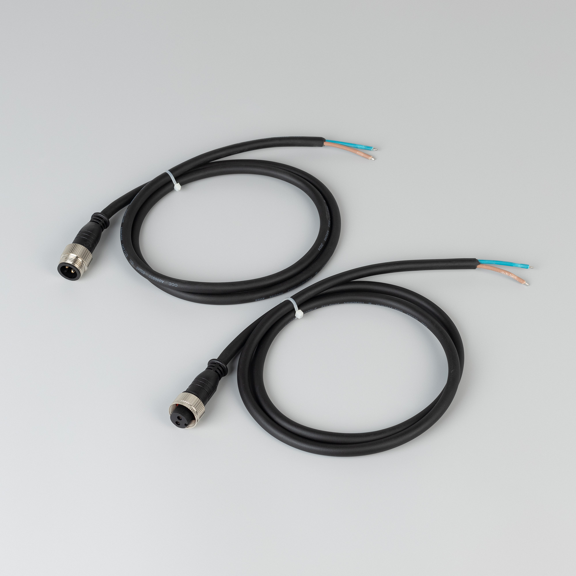 Коннектор питания ARL-LINE-2pin (24V) для светодиодных прожекторов серии LINE предназначен для подключения питания DC24 В. Длина разъёма Ø18 мм с проводом составляет 1000мм. Один провод с концом — male коннектор 2 pins, другой провод с концом — female коннектор 2 pins. Сечение провода 2x1.0 мм²