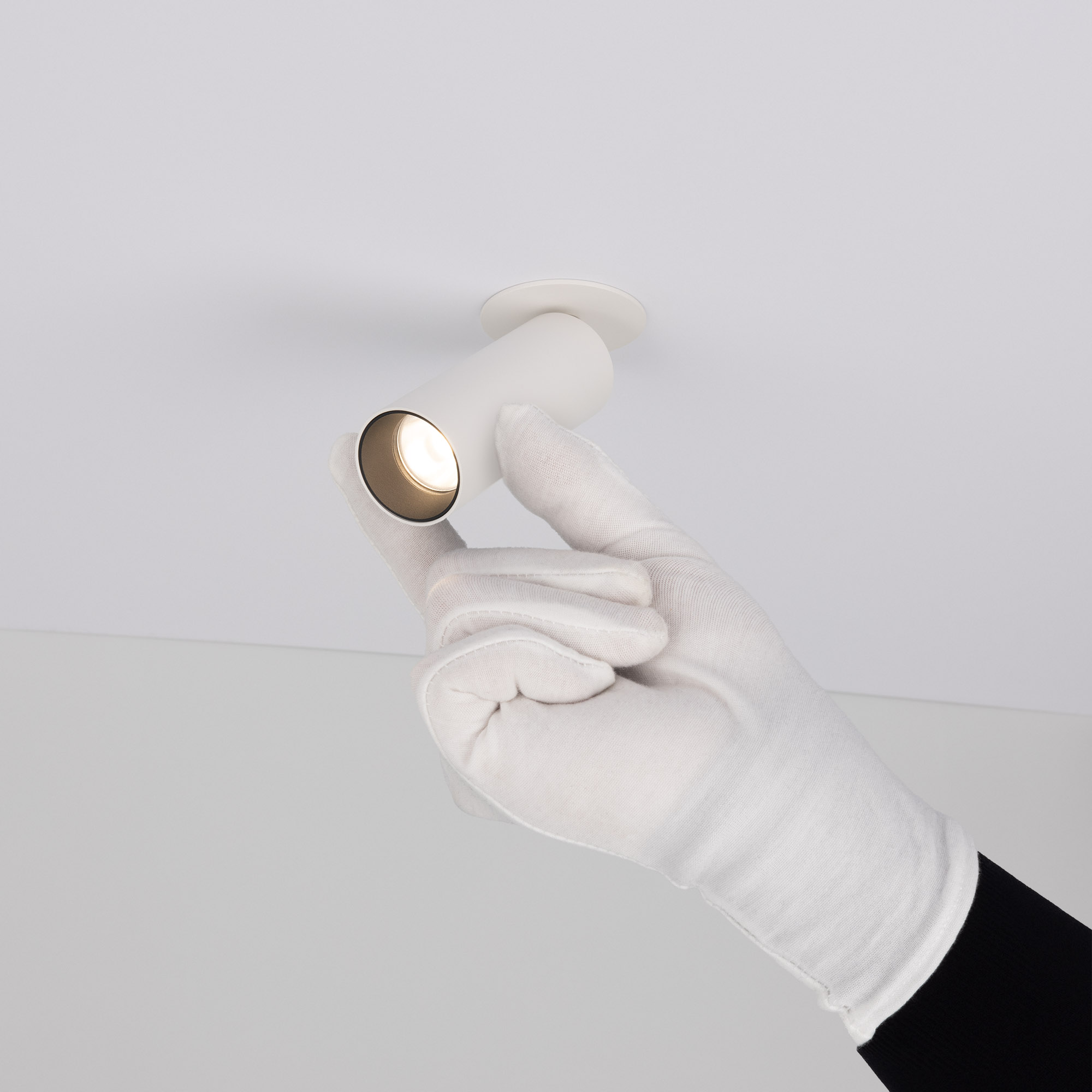 Светильник встраиваемый откидной. Мощность 7 Вт, св. поток 580 лм, 82 лм/Вт, дневной 4000 K, CRI>90, угол 36°, напряжение питания 230 В. Белый круглый корпус из алюминия, экран PMMA, степень защиты IP40. Размер: диаметр 35 мм, высота светового модуля 90 мм, высота основания 1.5 мм. Угол поворота 350°, угол наклона 90°. Монтаж встраиваемый, установочное отверстие: диаметр 45 мм, глубина 29 мм. Драйвер в комплекте 30-40 В, 150 мA, пульсация <1%.
