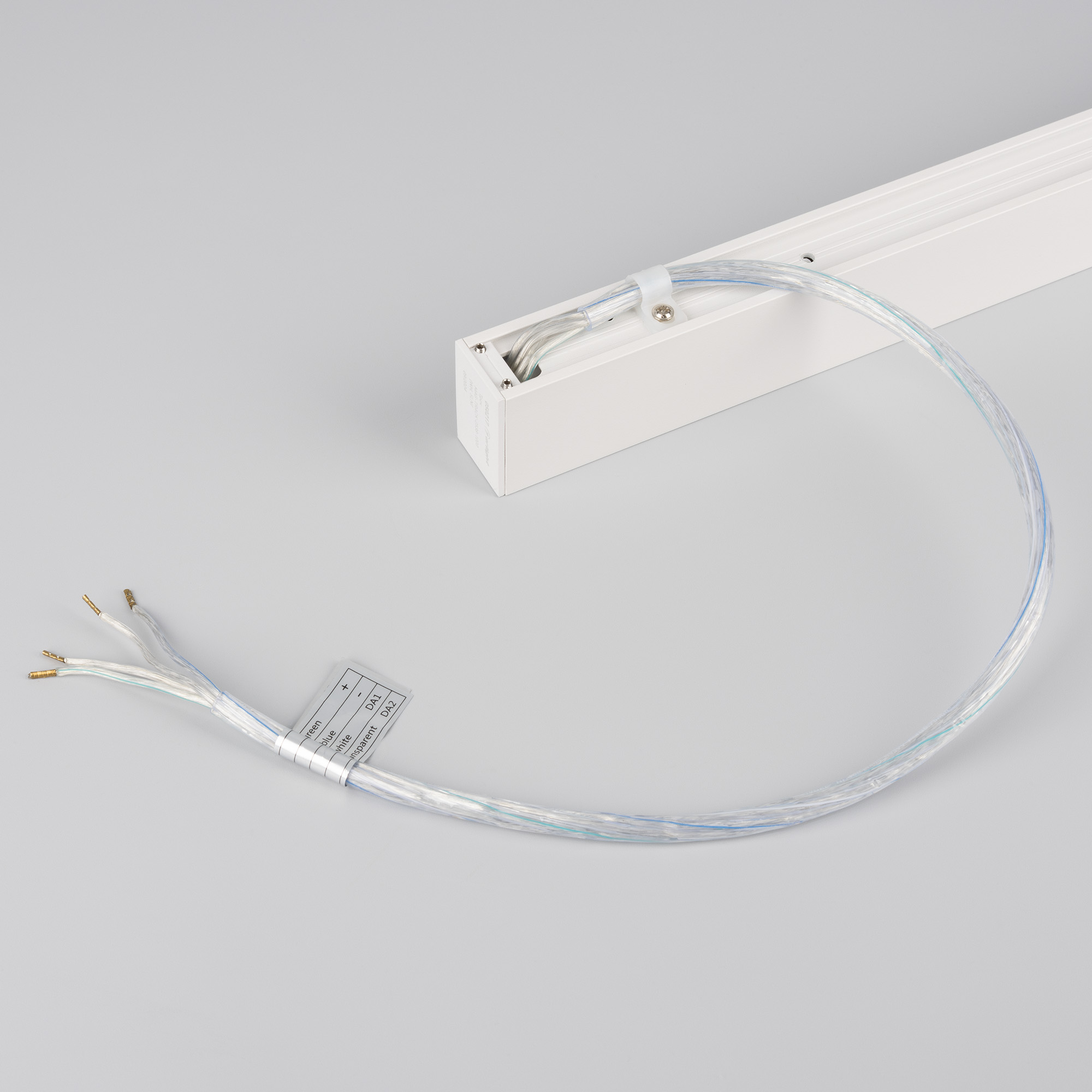 Подвесной, накладной магнитный трек, длина 1000 мм. DC24V, позволяет диммировать светильники по протоколу DALI. Материал алюминий, цвет белый. Две заглушки в комплекте. Размер ДxШxВ: 1003x25x38 мм. Размер (с учетом заглушек). Аксессуары для подвесного монтажа в комплект не входят. К плате идет провод 24В длиной 1м.