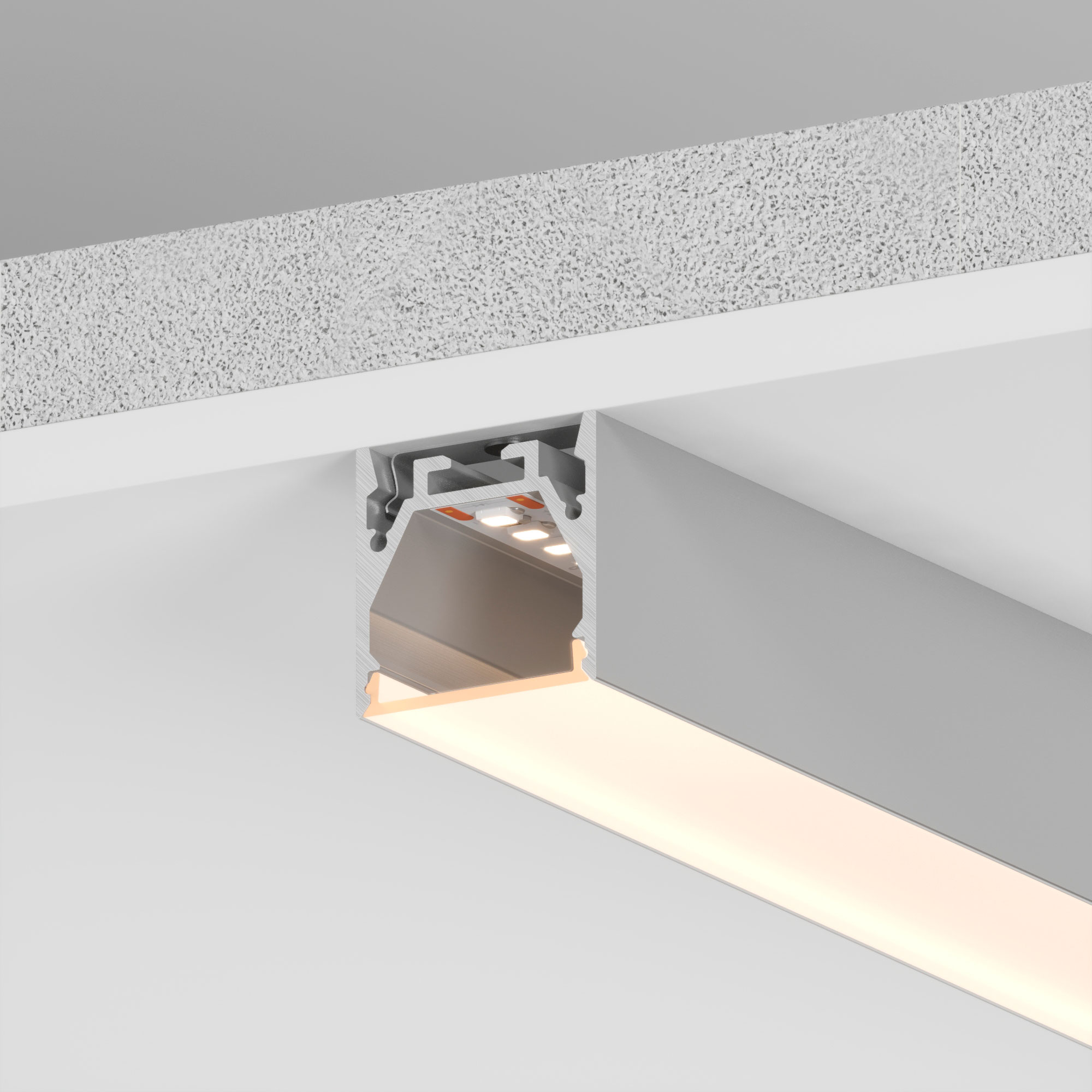 Подвесной/накладной профиль из анодированного алюминия для основного освещения и контурной подсветки.