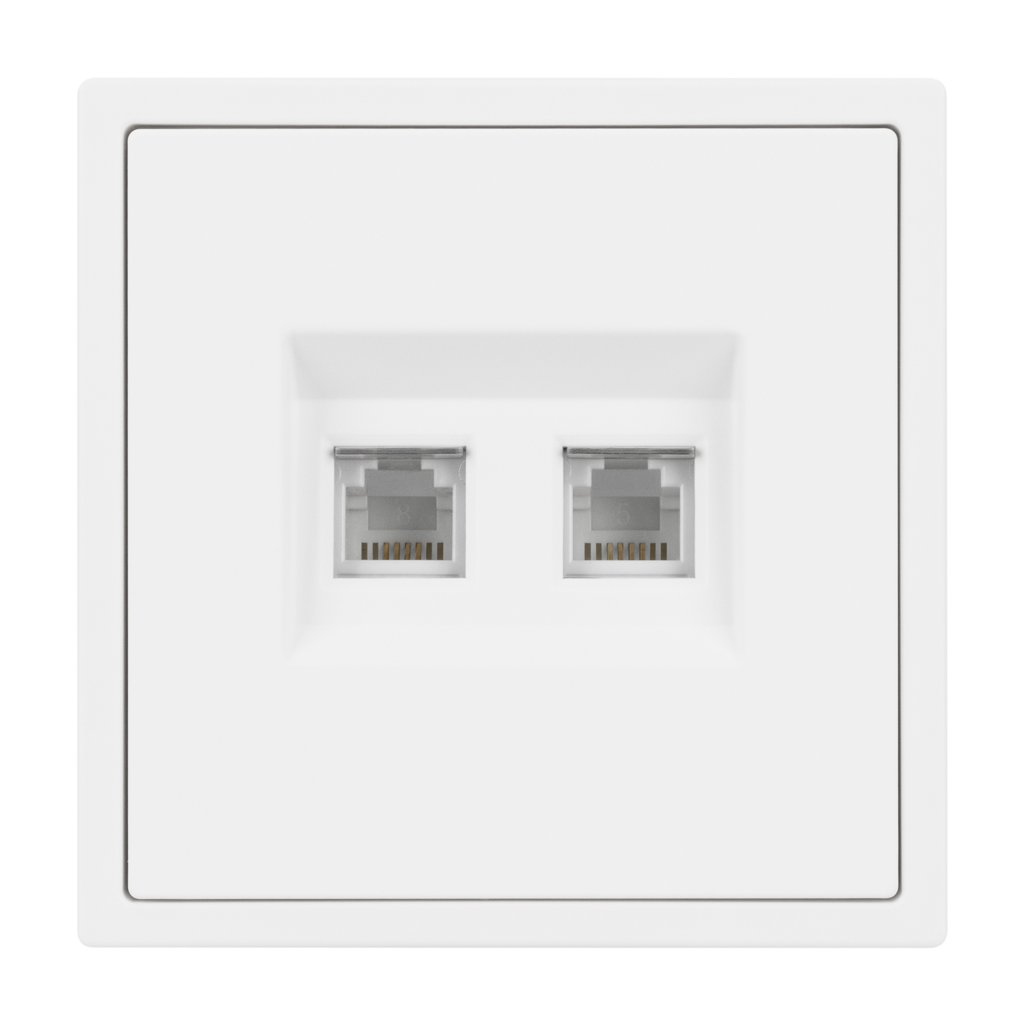 Механизм двойной телефонной розетки. Цвет - белый кварц, с Soft-Touch покрытием. Без фронтальной рамки. Уровень пылевлагозащиты IP20. Тип подключаемого разъема - RJ11. Розетка устанавливается в стандартный подрозетник круглого сечения диаметром 60мм. Габаритные размеры: длина 71 мм, ширина 71 мм, высота 42 мм. Гарантийный срок 10 лет.