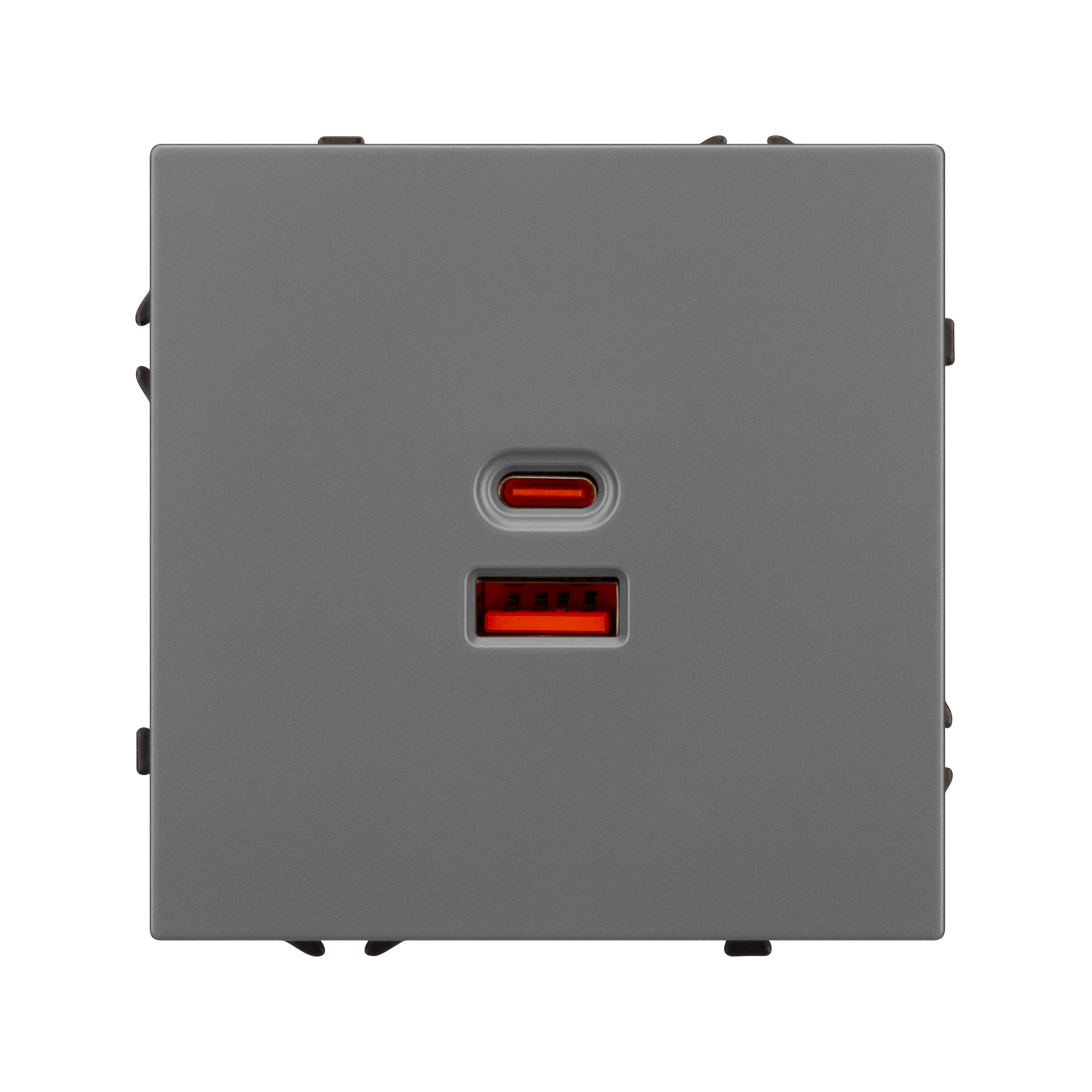 Строгие геометрические линии гармонично сочетаются с функциональностью продуманных механизмов, создавая идеальное решение для дизайн-проектов, где важны как эстетика, так и практичность. Механизм розетки с быстрой USB зарядкой, совместимый с рамками серии NOBE, создает утонченный минималистичный вид. Наличие USB Type A и Type C портов позволяет существенно сократить количество используемых розеточных постов под евровилку, сохраняя единую стилистику интерьера всего современного дизайн-проекта. Оба разъема поддерживают протокол быстрой зарядки Quick Charge QC 3.0, помимо этого для разъема Type C доступен протокол Power Delivery*. Выходные параметры для данных типов портов при этом составляют 30W и 65W соответственно. Видимая часть механизма выполнена из высококачественного пластика цвета серый базальт и имеет Soft-Touch покрытие, что придает изделию приятные тактильные ощущения и стильный внешний вид. Контактная часть присоединяется при помощи винтовых зажимов, позволяя надежно подсоединить механизм выключателя к питающим элементам. Суппорт окрашен в черный матовый цвет под основу механизма и выполнен из металла толщиной 1,5мм, что обеспечивает безопасность и уверенность в установке. На каждой стороне суппорта размещены фиксирующие элементы, позволяющие комбинировать механизмы в системы до 5шт как горизонтально, так и вертикально. *Для активации функции быстрой зарядки необходимо использовать специализированный зарядный кабель, который предназначен для работы с зарядными устройствами повышенной мощности.
