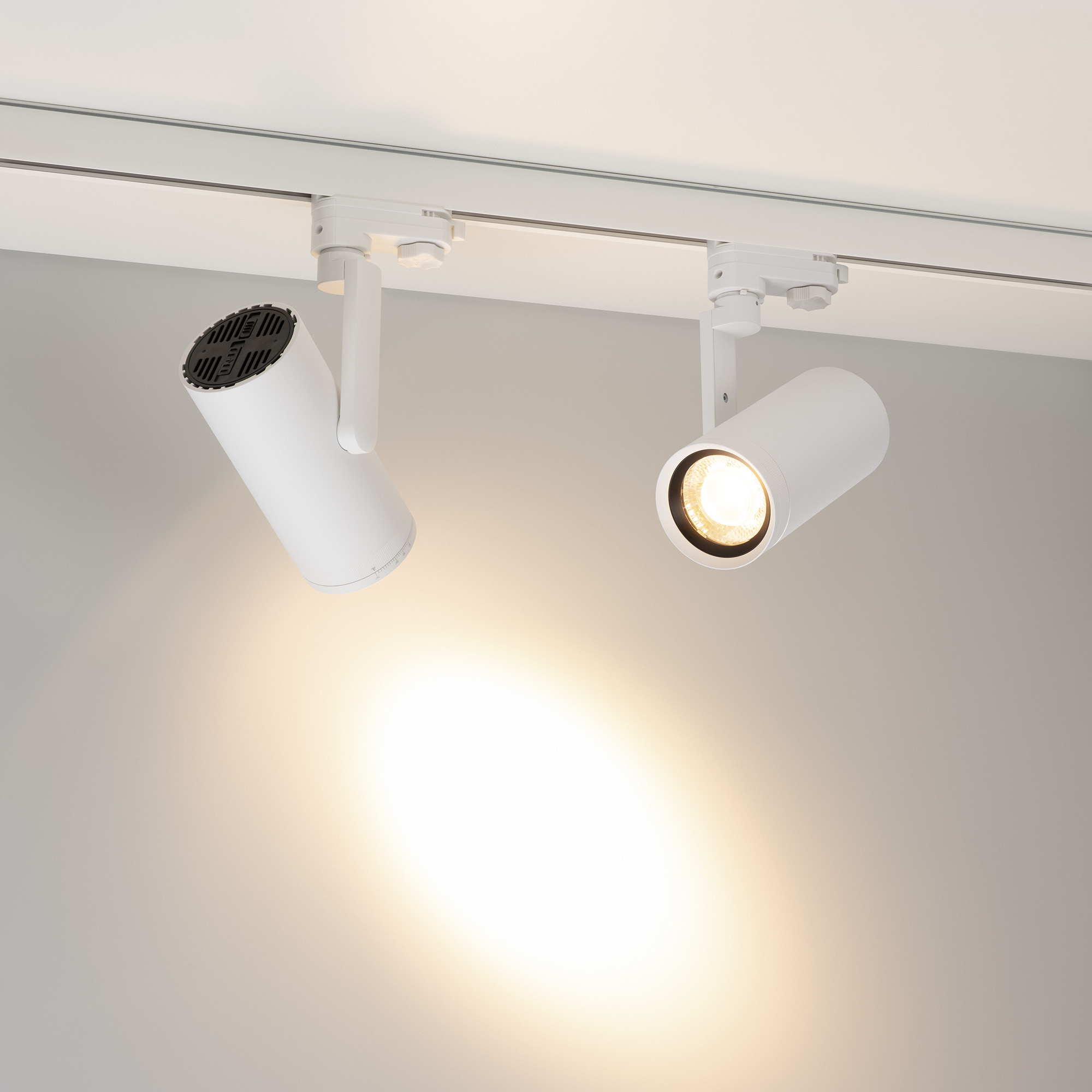 Трековый светильник URANUS с изменяемой мощностью 18/25Вт (при помощи переключателя на корпусе) предназначен для акцентного освещения общественных, коммерческих и торговых помещений. Возможность переключения цветовой температуры на корпусе светильника в диапазоне 2700K/3000K/3500K/4000K/5700K, а также регулируемый угол излучения 20-50° позволит эффективно подсветить различные зоны в помещении, используя только один вид светильника. Боковое крепление светового модуля увеличивает угол наклона и поворота корпуса светильника, позволяя мгновенно менять световые акценты.