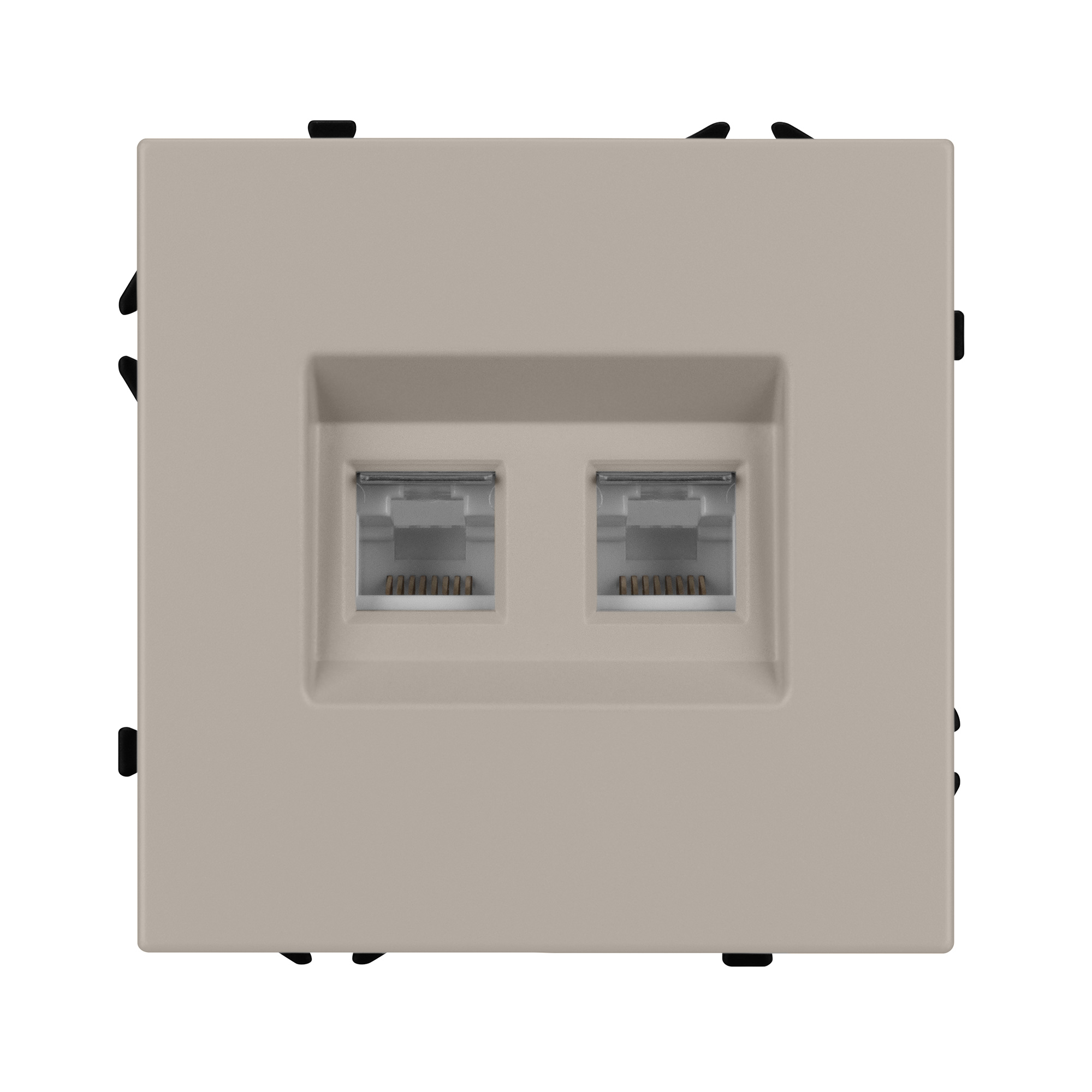 Механизм компьютерной розетки на 2 поста 6-й категории. Цвет - кашемир, с Soft-Touch поверхностью. Без фронтальной рамки. Уровень пылевлагозащиты IP20. Тип подключаемого разъема - RJ45. Розетка устанавливается в стандартный подрозетник круглого сечения диаметром 60мм. Габаритные размеры: длина 71 мм, ширина 71 мм, высота 42 мм. Гарантийный срок 10 лет.
