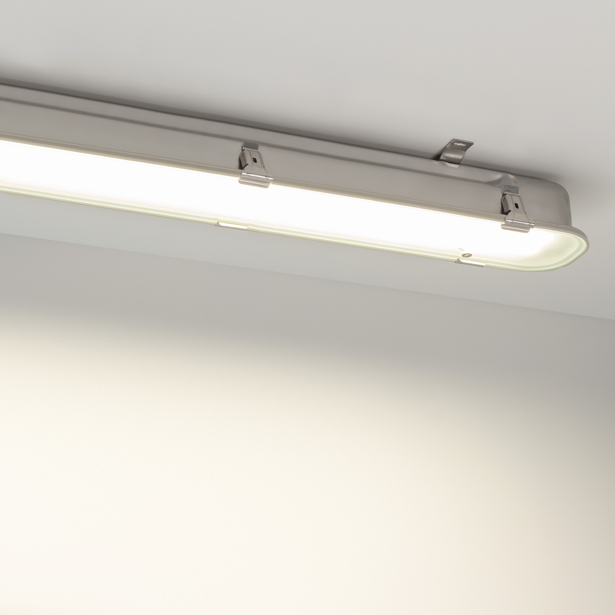 Влагозащищенный линейный светильник для использования в технических помещениях и в пожароопасных помещениях. Мощность светильника 60 Вт. Цвет свечения ДНЕВНОЙ 4000К, св.поток 6300 лм, CRI(Ra)>80, угол свечения 100°. Корпус прямоугольный, нержавеющая сталь, влагозащищенный IP65. Размер LxWxH 1608x138x104мм. Питание AC 220-240В, 60 Вт, драйвер встроенный. Материал рассеивателя - темпорированное стекло. Материал корпуса - нержавеющая сталь AISI 304. С резиновым кабелем питания 3х1 мм длиной 35 см. Рабочая температура -30°C...+50°C. Может применяться в категориях помещений B1-B4 и Г. Классы пожароопасных зон П-I,П-II,П-IIа,П-III.