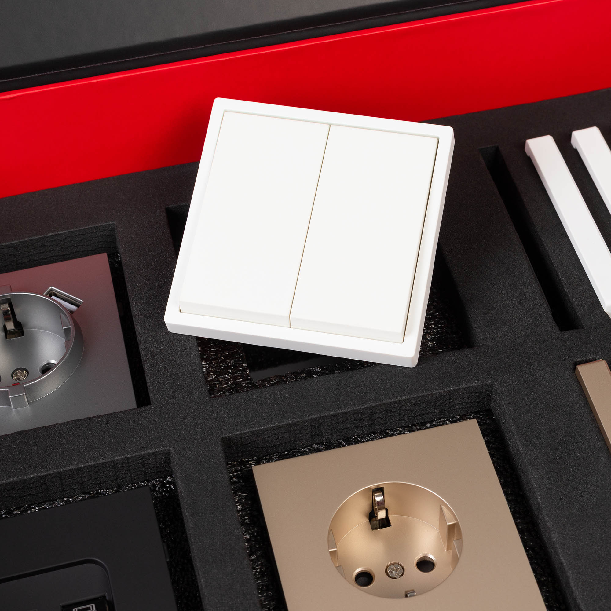 Демо-кейс с наполнением электроустановочных изделий серии TENDO.