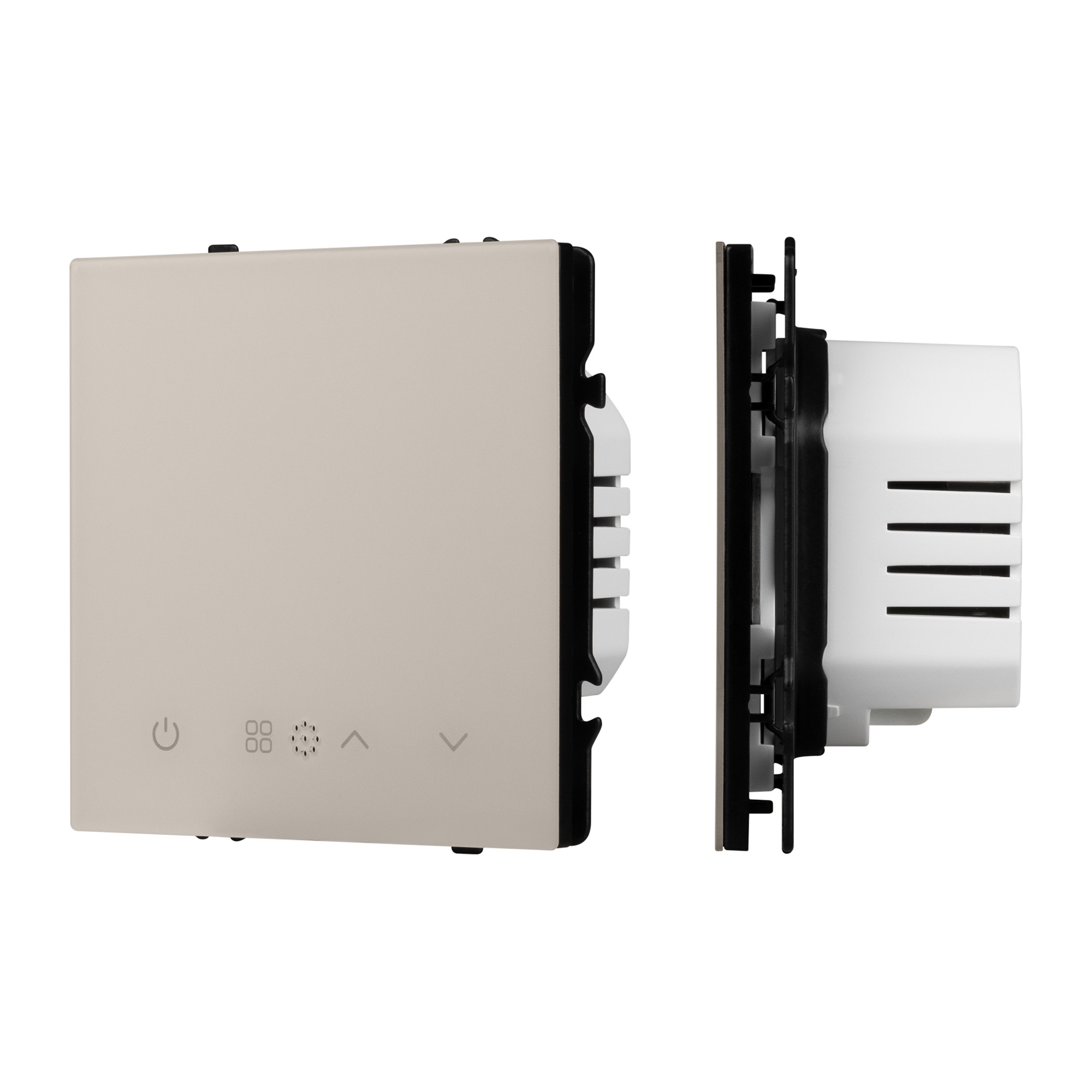 Строгие геометрические линии гармонично сочетаются с функциональностью продуманных механизмов, создавая идеальное решение для дизайн-проектов, где важны как эстетика, так и практичность. Терморегулятор совместим с рамками серии NOBE, создает утонченный минималистичный вид. Скрытый тип монтажа позволяет гармонично встроить в интерьер любого современного дизайн-проекта. Видимая часть механизма выполнена из глянцевого поликарбоната цвета кашемир, что придает изделию приятные тактильные ощущения и стильный внешний вид. Настройка работы электрического теплого пола осуществляется за счет выбора необходимых значений не посредственно как на самом устройстве, так и при подключении по беспроводной сети Zigbee в приложениях SmartLife и Умный Дом (Яндекс). Суппорт окрашен в черный матовый цвет под основу механизма и выполнен из металла толщиной 1,5мм, что обеспечивает безопасность и уверенность в установке. На каждой стороне суппорта размещены фиксирующие элементы, позволяющие комбинировать механизмы в системы до 5шт как горизонтально, так и вертикально.