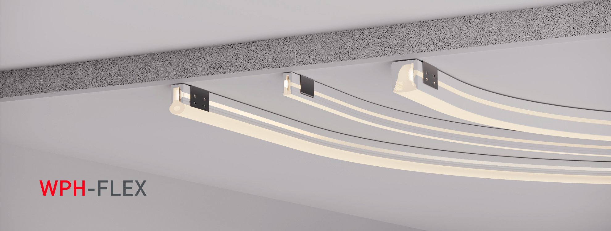 Все профили WPH FLEX можно зафиксировать на поверхности накладным способом с помощью держателей; для ряда моделей также предусмотрены аксессуары для подвесного монтажа.