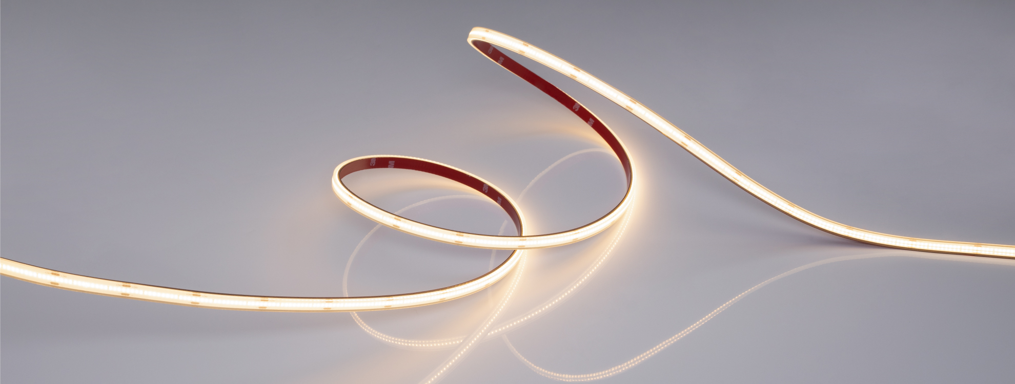 Равномерное свечение Благодаря светодиодам CSP лента образует равномерное свечение без видимых точек светодиодов.