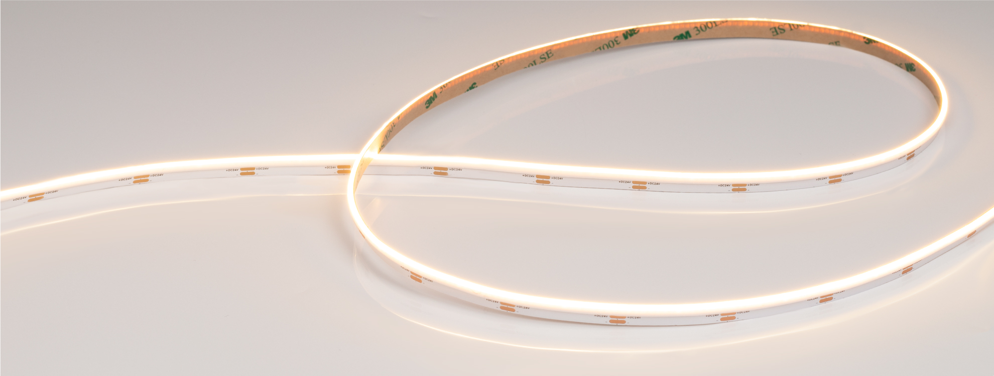 Ленты серии COB за счет заливки люминофором по всей длине образуют равномерное свечение даже без применения рассеивающих экранов.