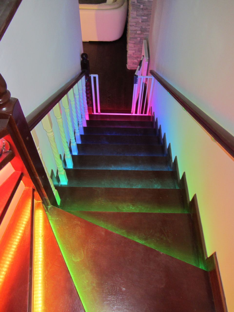 Динамическая многоцветная светодиодная подсветка лестницы