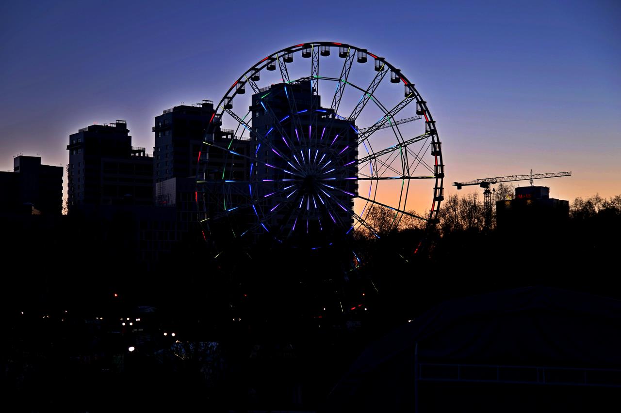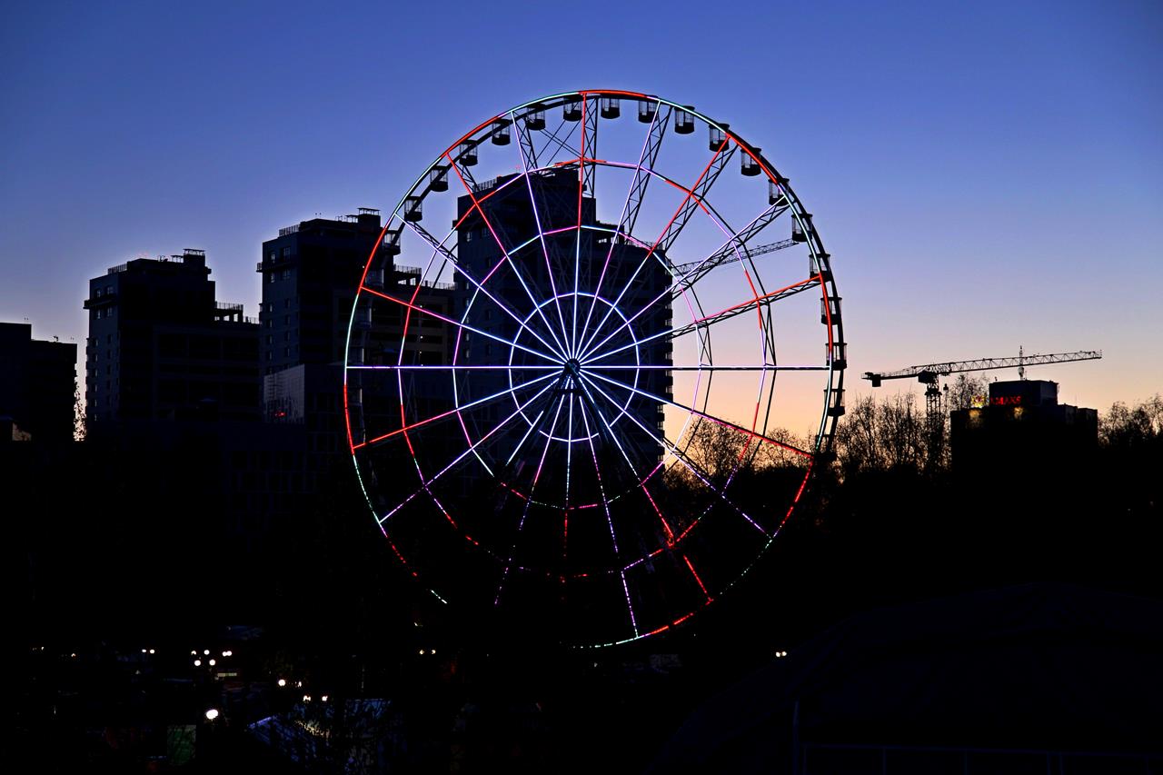 Создание системы динамической светодиодной подсветки колеса обозрения в парке Кырлай города Казань.