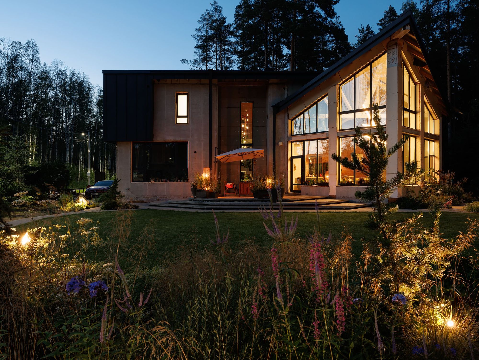 Этот дом стал творческой лабораторией, «местом силы» для реализации концепции «дизайна загородной жизни». Эта концепция объединяет архитектуру, интерьер и ландшафт в единое гармоничное пространство.