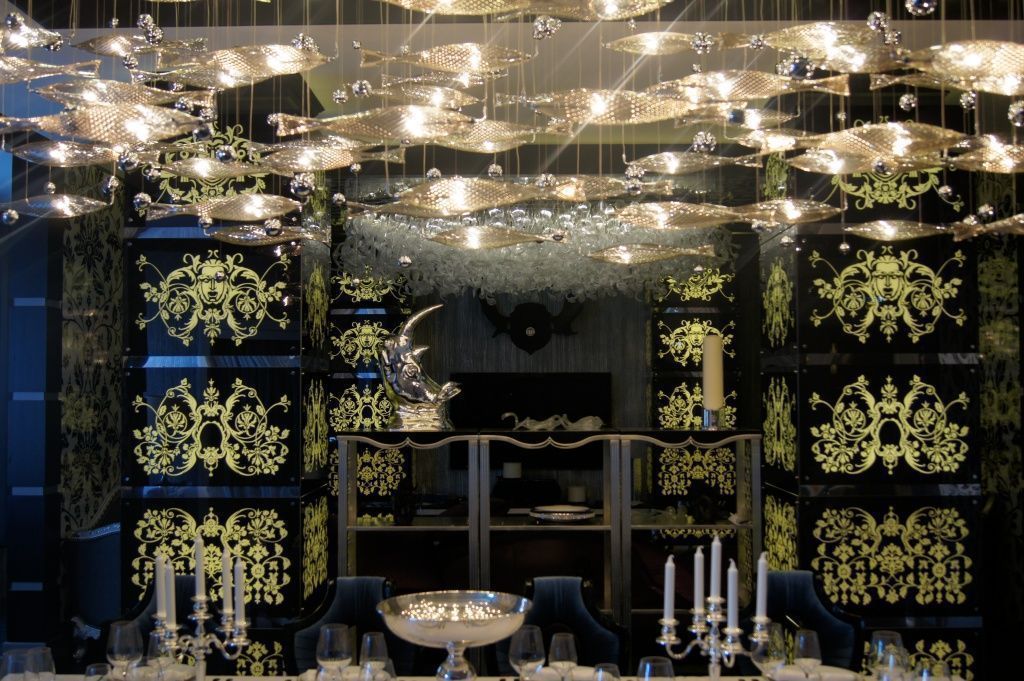 Для подчеркивания изысканности и утончённости всего интерьера было создано мягкое и равномерное освещение в каждой зоне клуба, при помощи светового оформления выделено чёткое зонирование пространства залов, были спроектированы и разработаны оригинальные люстры для основного освещения. Эти задачи решены с применение светодиодной ленты, диммеров и блоков питания продукции arlight®.