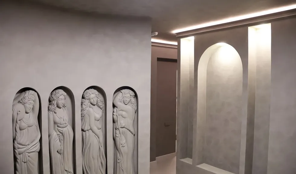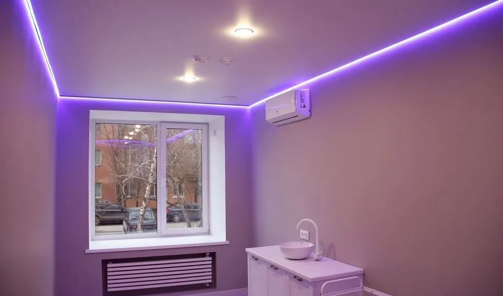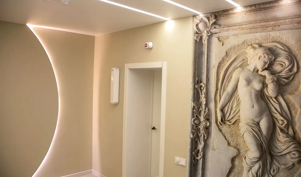 Свет в интерьере клиники соответствует общей концепции дизайна. В отделке использованы холодные оттенки белого и серого, которые подчеркиваются нейтральным дневным светом (4000 К).