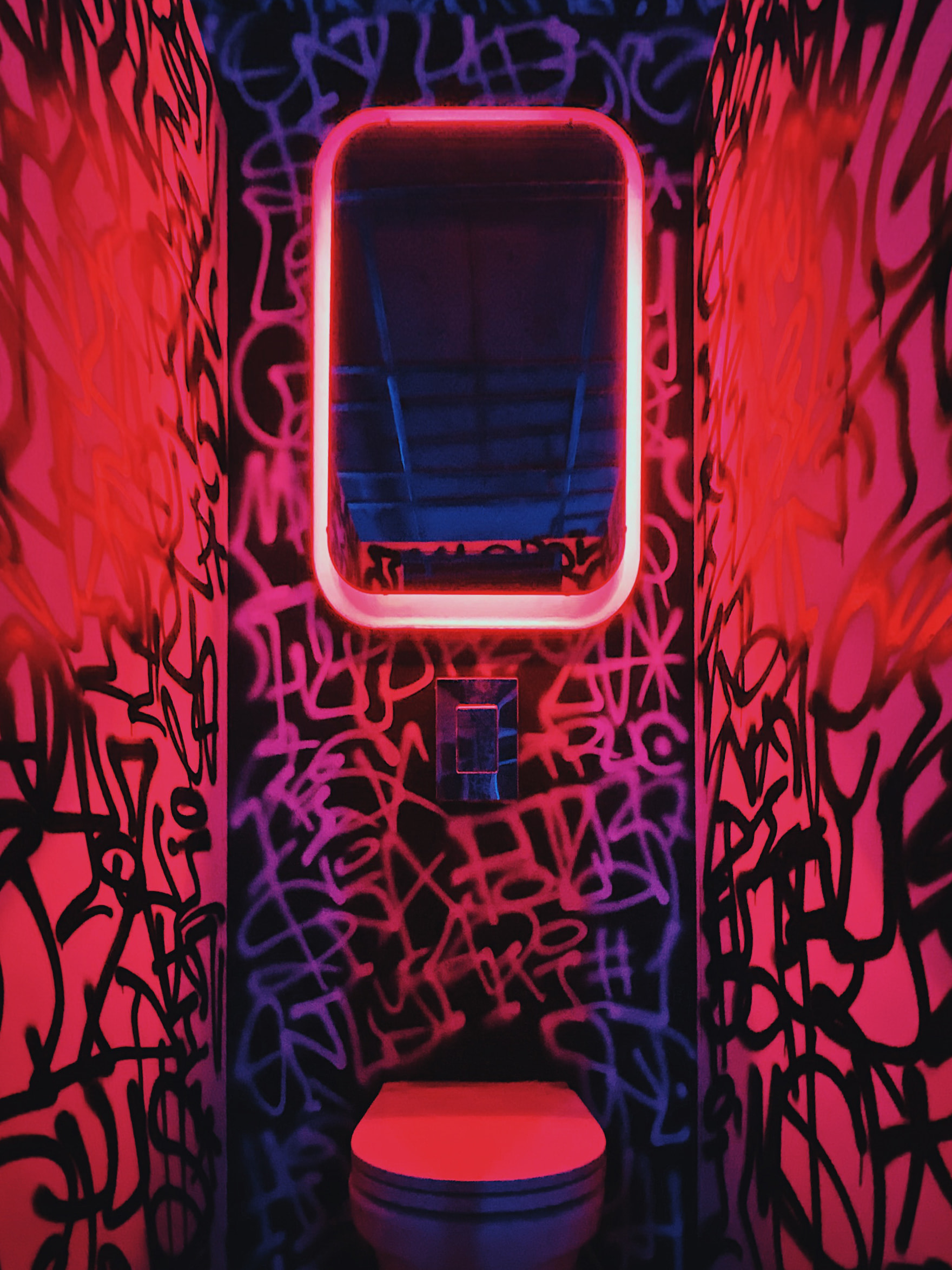 С помощью световых инсталляций в клубе воссоздана невероятная атмосфера ночного города. Фактурность кирпичных стен подчеркнута световыми линиями разных цветов. Помещения, оформленные в стиле стрит-арт, напоминают тусовочные улицы европейских городов. В рамках проекта создано динамическое освещение с возможностью смены цвета свечения лент с помощью RGB-контроллера. Использование простых подвесных линейных светильников добавляет пространству четкой геометрии.