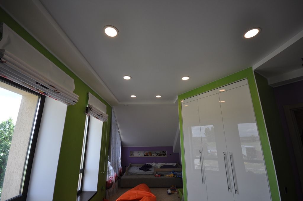В проекте реализована два варианта освещения. Первый вариант равномерная подсветка натяжного потолка светодиодной лентой
