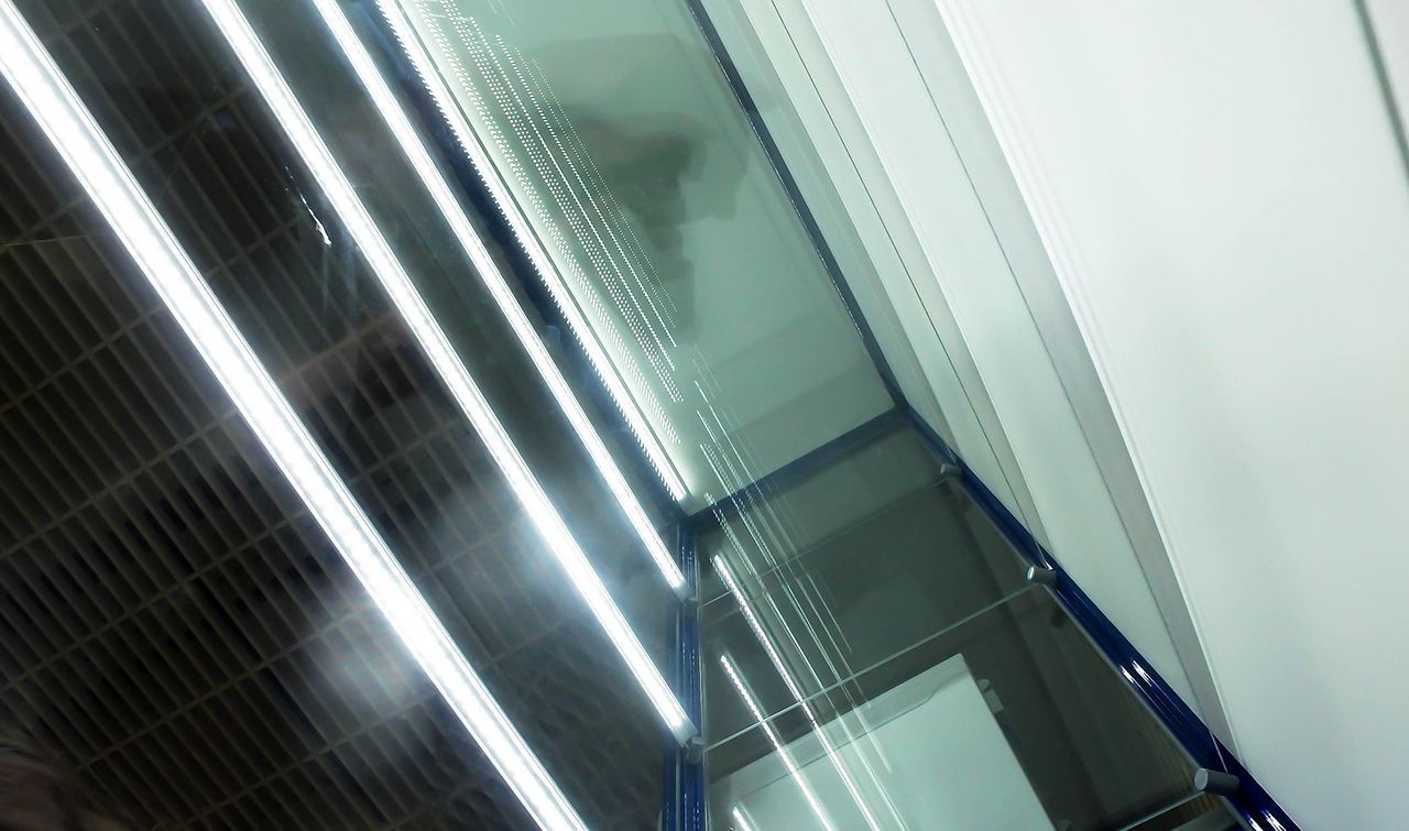 Подсветка стеклянных витрин в компьютерном магазине OLDI.