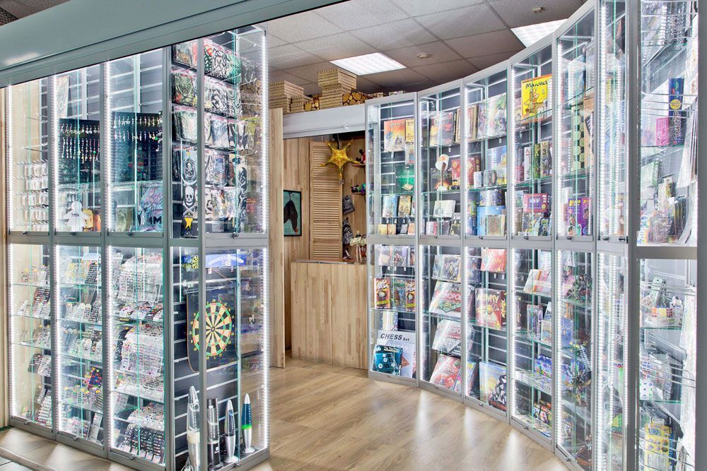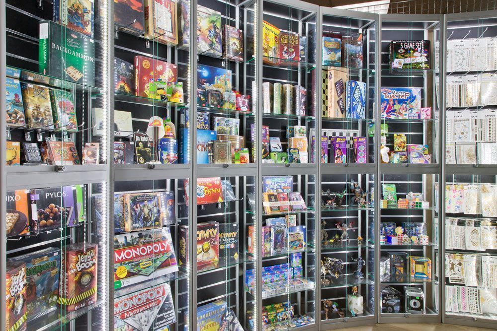 Подсветка стеклянных витрин магазина настольных игр в торговом центре на основе светодиодного оборудования торговой марки arlight®.